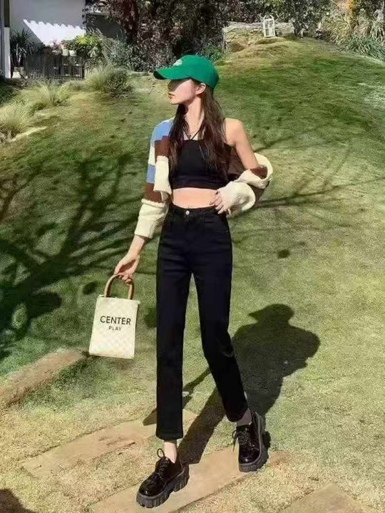 捡漏款,春秋新款高弹力洗水棉网红复古牛仔直筒烟管裤...