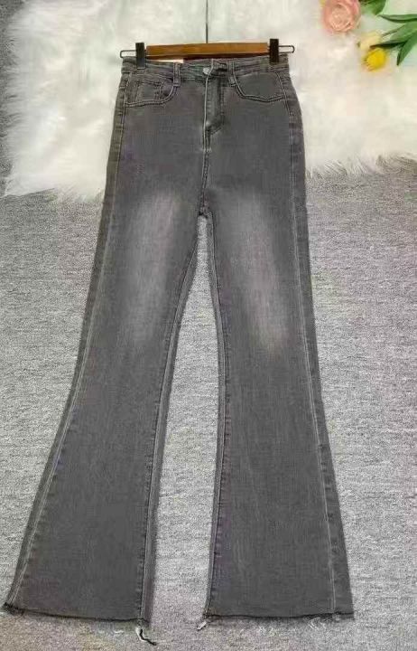 灰色辣妹微喇牛仔裤新款高腰显瘦直筒马蹄毛边喇叭裤子851件,尺码S~2XL独立...