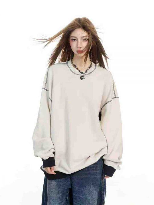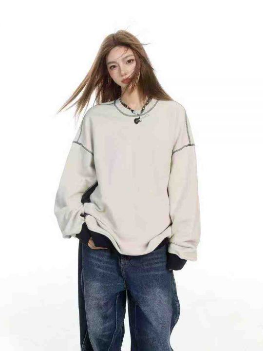 ☕️纯棉毛圈卫衣美式复古圆领拼接撞色插肩卫衣女春秋款上衣287件全清8.8元 分货9.9元 码数S- XL,单款单色,独立包装[庆祝][庆祝]