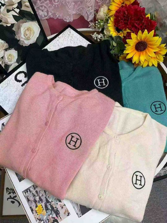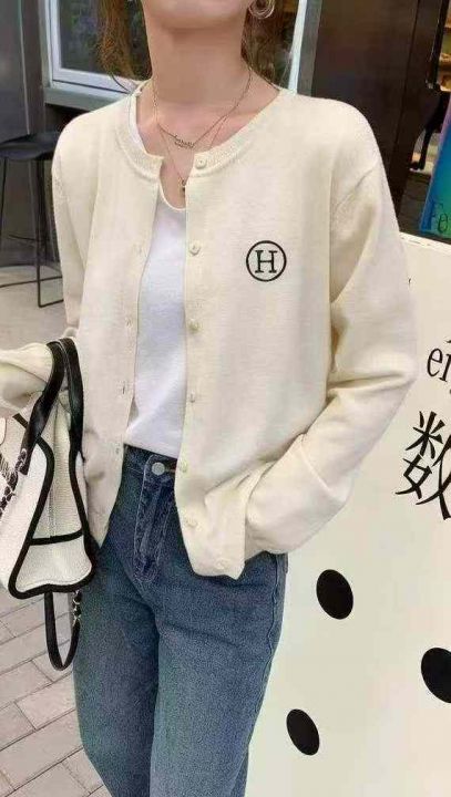春秋新款韩系宽松刺绣小标糯米包芯纱毛衣开衫,独立包...