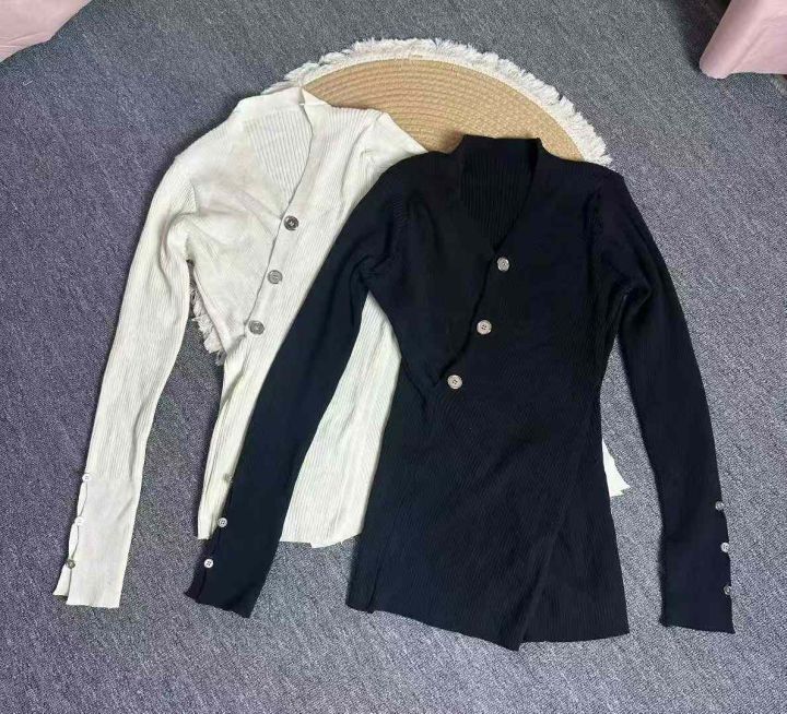 不规则v领针织衫女秋冬设计感小众毛衣开叉修身上衣潮,独立包装,550件,清7.8,分➕1