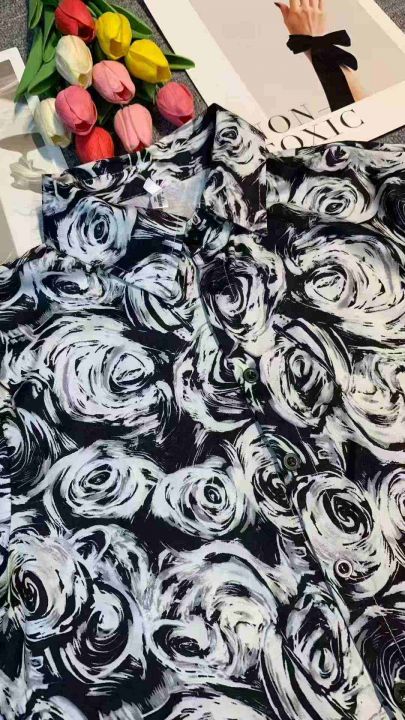 慵懒风印花设计感海边度假百搭衬衣,[爱心]100件左右,码数M-3XL,穿90-150斤,(模特图仅供参考),[666]工厂原包装瑕疵