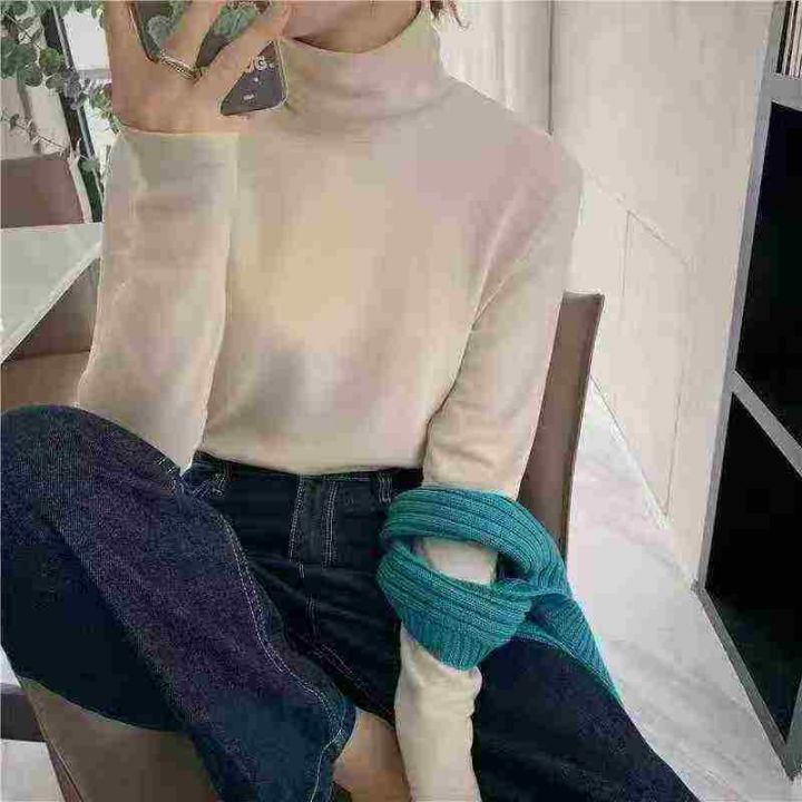 木耳边半高领打底衫女秋冬新款加绒保暖内搭外穿上衣,两个图片款数量:200...