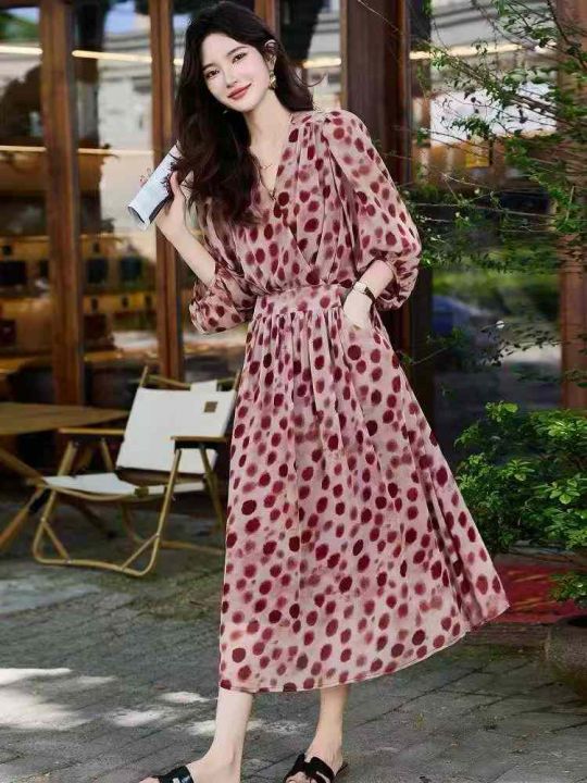 波点碎花连衣裙v领夏季2025新款法式高级感显瘦气质A字...