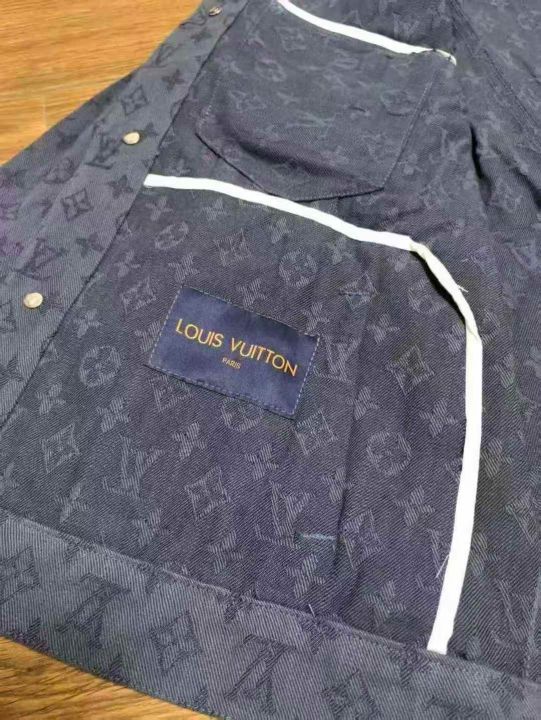LV/路易威登2025新款男士老花MONOGRAM 牛仔工装夹克1ABJAM 蓝色 紫色 灰色 黑色 高品质牛仔外套700件清货!。 货号:33064