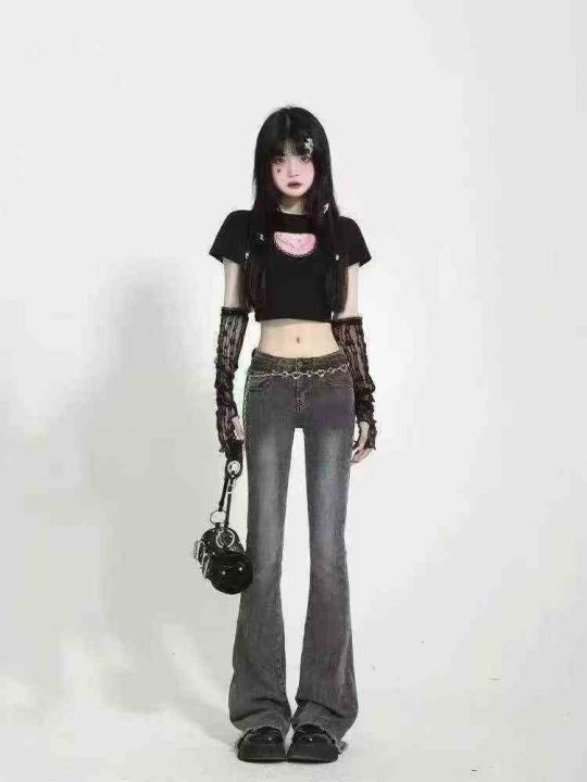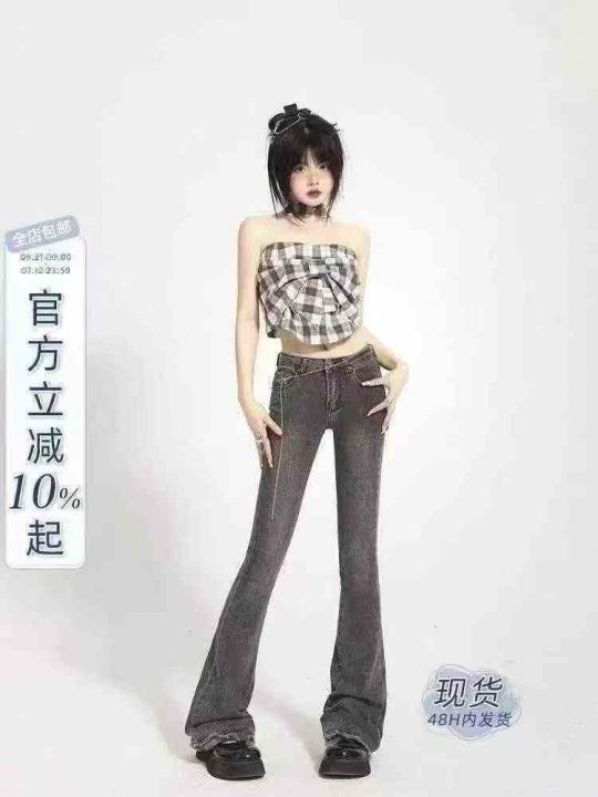 灰色辣妹微喇牛仔裤新款高腰显瘦直筒马蹄毛边喇叭裤子...