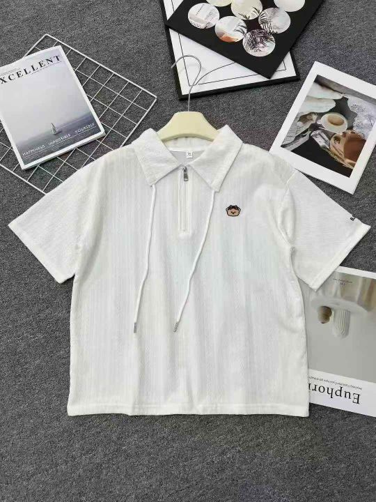 ☕️polo领短袖t恤女新款夏季韩版宽松大码设计感小众...