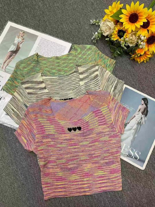夏季新款撞色彩虹条纹刺绣针织短袖T桖,独立包装,均码面料柔软舒适弹力大,682件,全清5.9元超低价秒杀!分货加一!