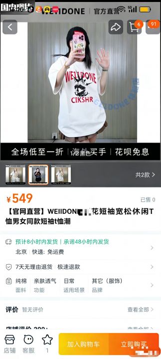 5.9清电商仓回收6294件潮牌男女同款印花宽松短袖T恤,码数XS-2XL码。后领包...