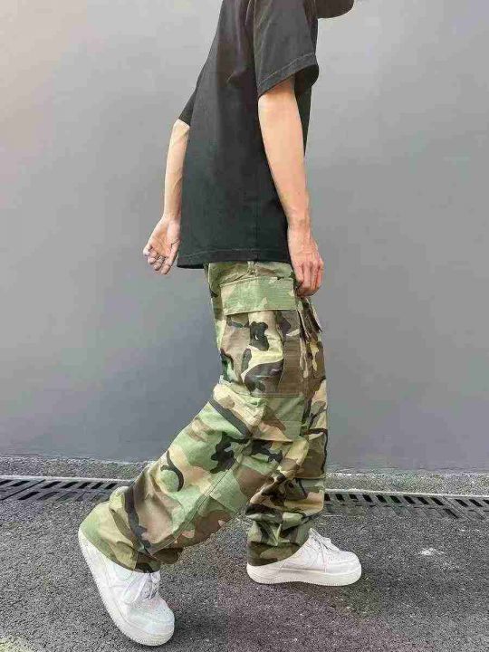 男女同款迷彩工装阔腿牛仔长裤 92件全清14.8元,不分货,正品独立包装,码...