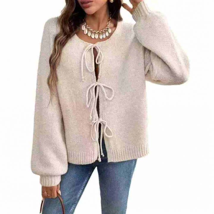 秋冬新款品牌外贸原单美式时尚百搭粗针加厚系带毛衣开...