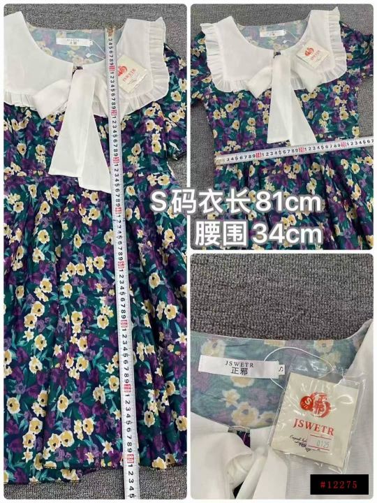 娃娃领碎花连衣裙190件9.5,泡泡袖,娃娃领,侧腰拉链...