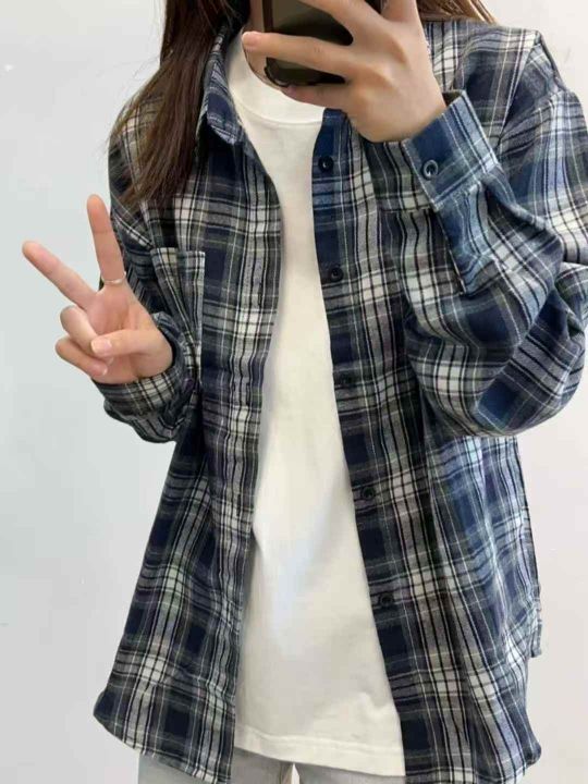 700件左右慵懒风百搭衬衫外套春秋新款复古格子长袖衬...