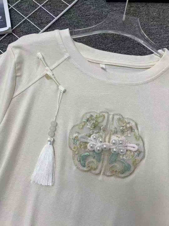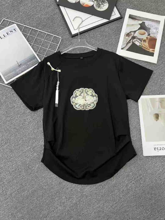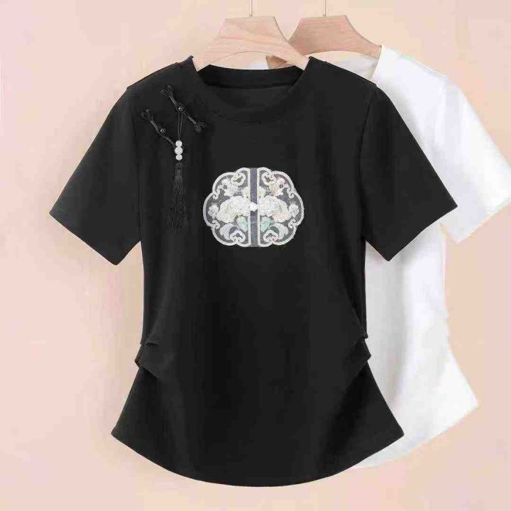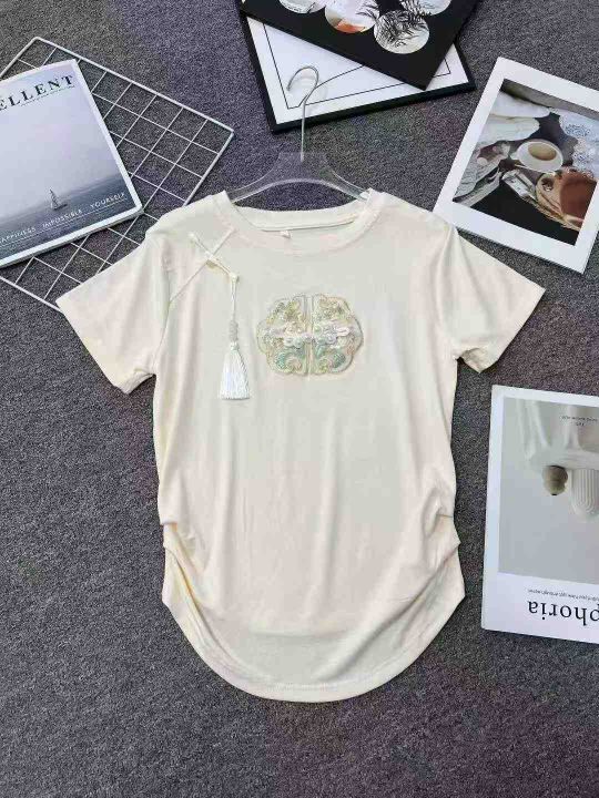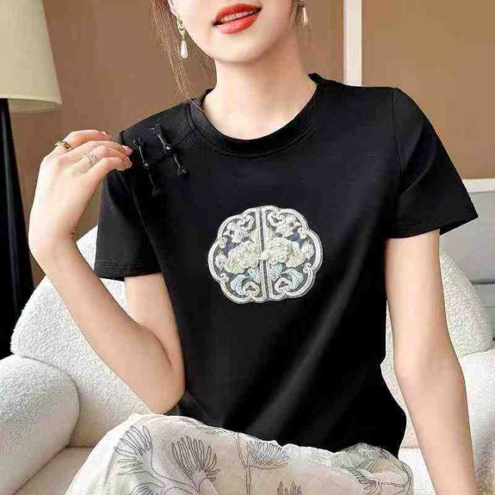☕️纯棉辣妹T国风刺绣别致盘扣正肩短袖t恤女新款夏季新中式独特气质上衣403件全清9.8元 分货+1元,S到XXL,单款2色,独立包装[庆祝][庆祝]