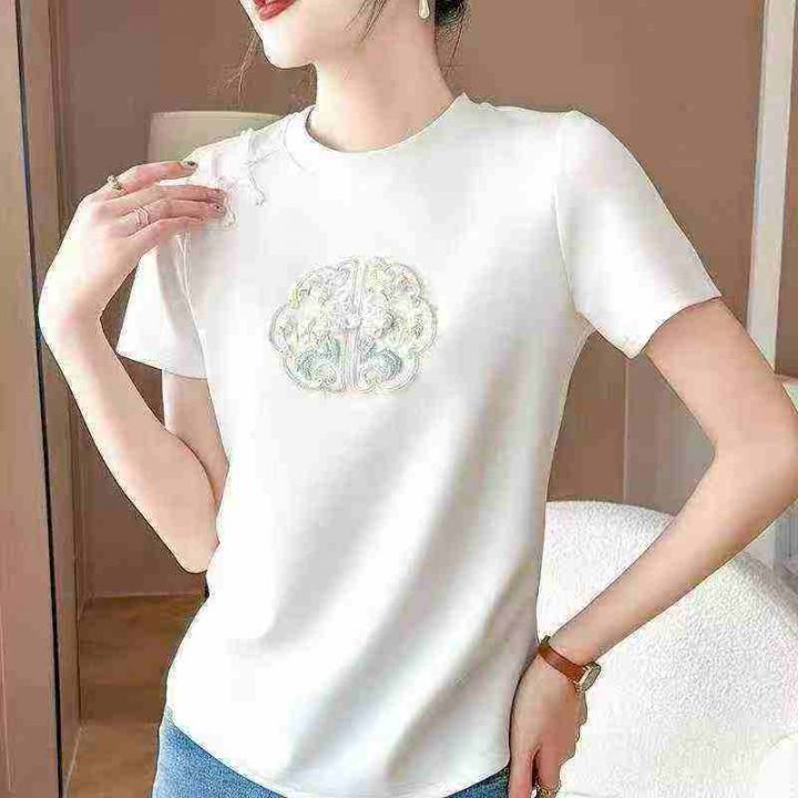 ☕️纯棉辣妹T国风刺绣别致盘扣正肩短袖t恤女新款夏季新中式独特气质上衣403件全清7.8元 分货+1元,S到XXL,单款2色,独立包装[庆祝][庆祝]