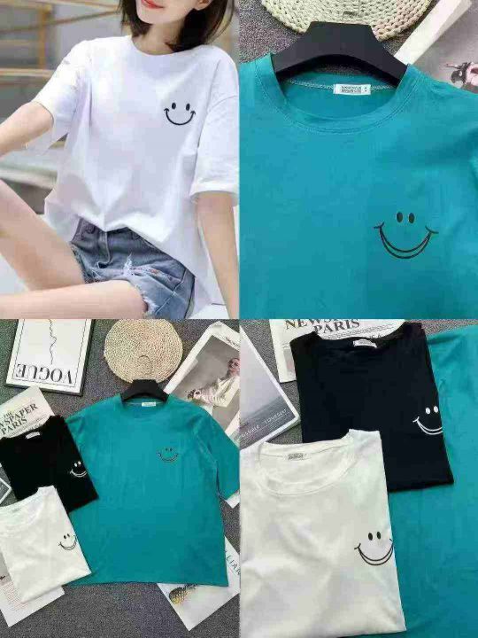 ☕️刺绣笑脸,整款短袖T恤500件全清5.8 分货6.8 码数S到XL ,高弹力宽松版,独立包装 ,工艺T恤女夏季宽松圆领短袖上衣新款体恤