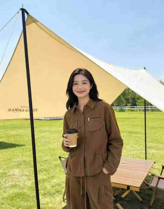 冬季翻领灯芯绒保暖套装女款现货,加绒加厚设计,宽松...