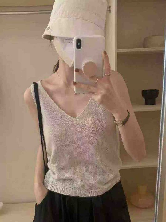 夏季新款小众高级感天丝亚麻V领坎肩针织背心,独立包装,均码面料柔软舒适...