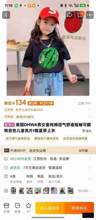 工艺款,儿童纯棉翻转亮片变色短袖t恤数量:19200件,...