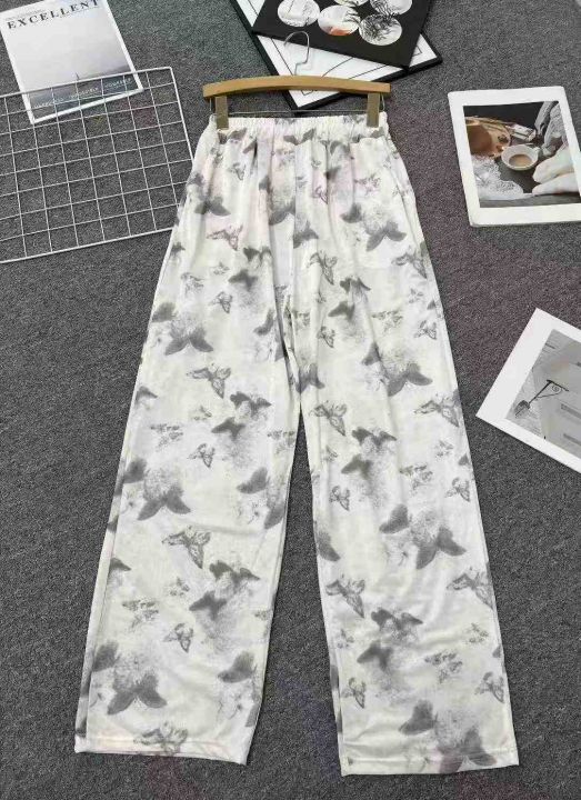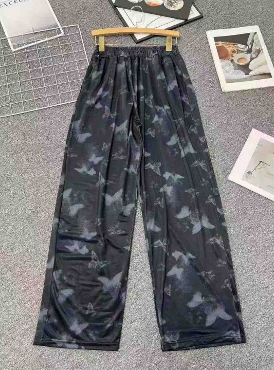 ☕️水墨蝴蝶国风阔腿裤女夏季休闲新中式扎染冰丝裤36...