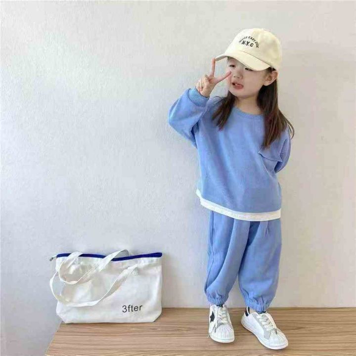 [月亮]:7.8清130套(不分货)[月亮]:潮童插肩拼色长袖T恤长裤两件套套装[...