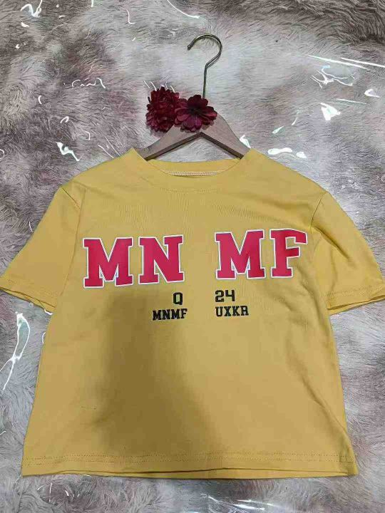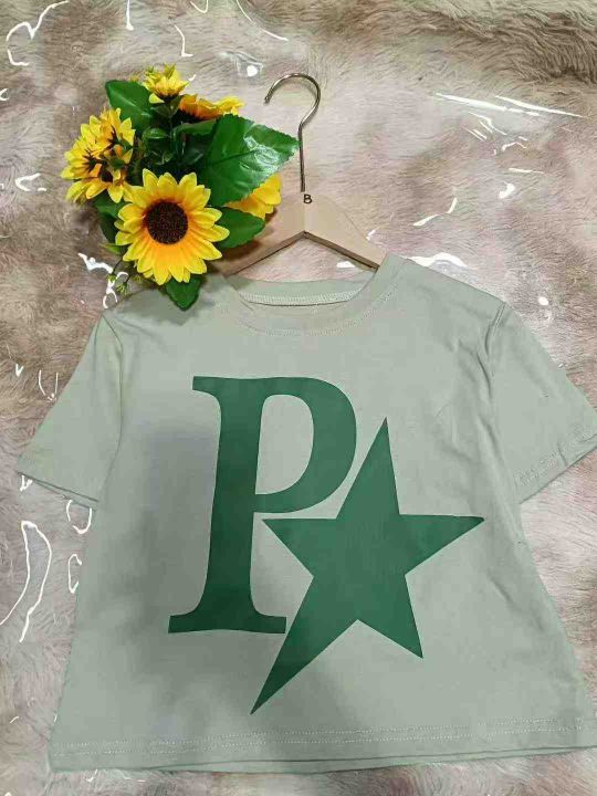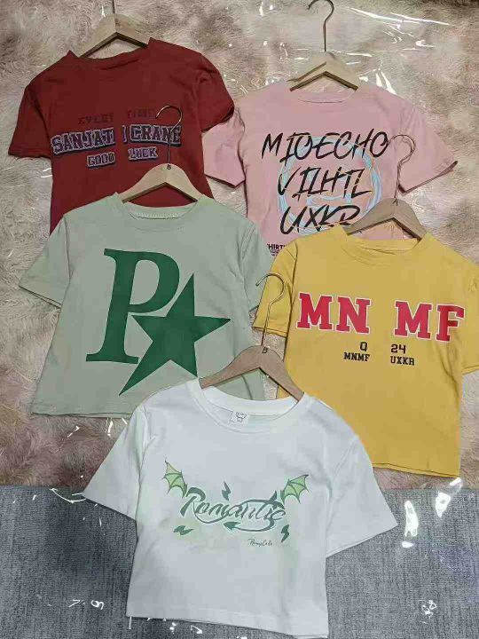 4.9元清仓!纯棉辣妹露脐短袖仅60件,均码宽松印花款,洋气百搭品质在线,独立包装。。 货号:24862