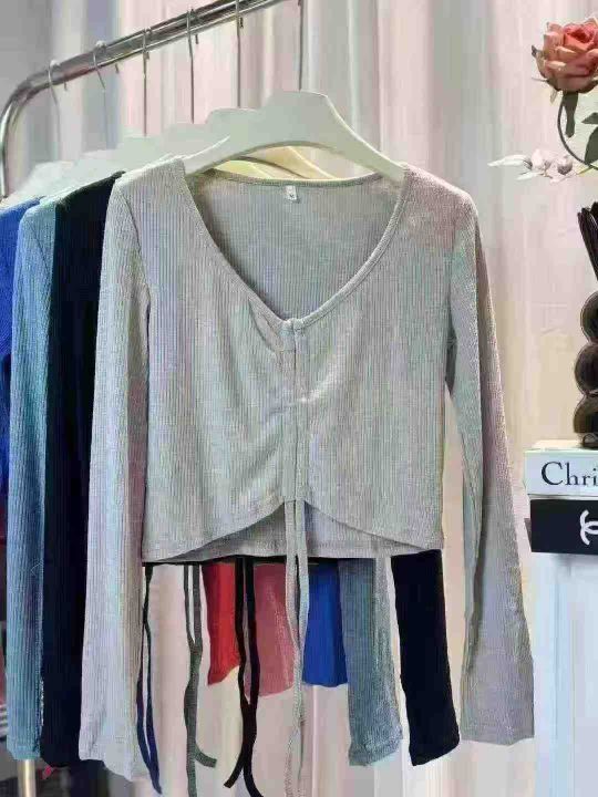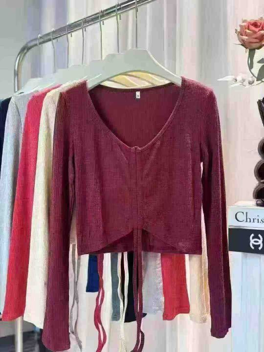 880件春装新款性感辣妹短款抽绳T恤长袖小众款高腰露脐装V领港风潮女上衣,抽绳设计可调节,含棉亲肤柔软高弹力,单款多色,尺码S-2XL,颜色相对均匀,独立拉链包装,几乎零瑕疵!福利秒杀价5.8