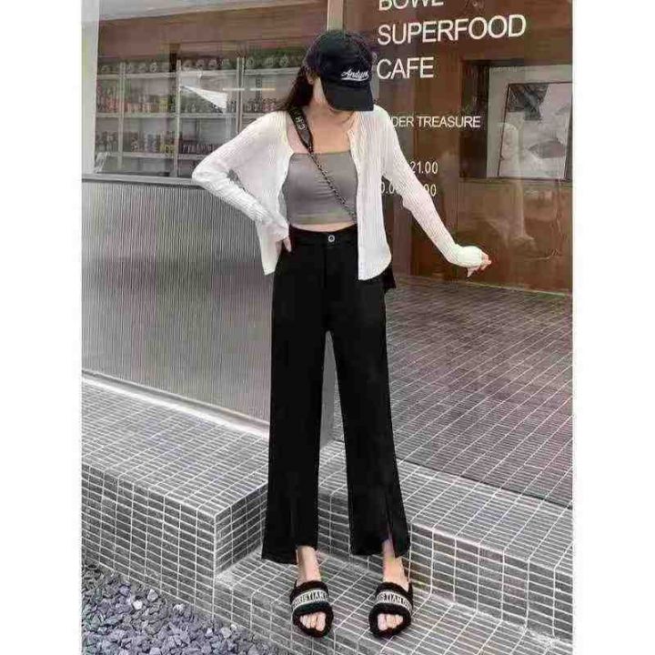 ☕️货号2312# 数量260条全清11.8元,码数S到XXL,独立包装,内里都有包边,单款黑色开叉西装裤女春秋季小个子垂感显瘦不规则九分阔腿裤
