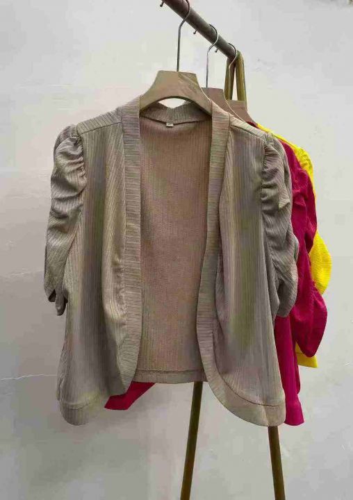 亏本清仓662件短款开衫外搭披肩外套。袖子褶皱设计,...