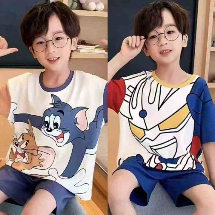 有些裤子七分裤 有些裤子是短裤 上衣都是短袖,长袖长裤的极少 男女童都有