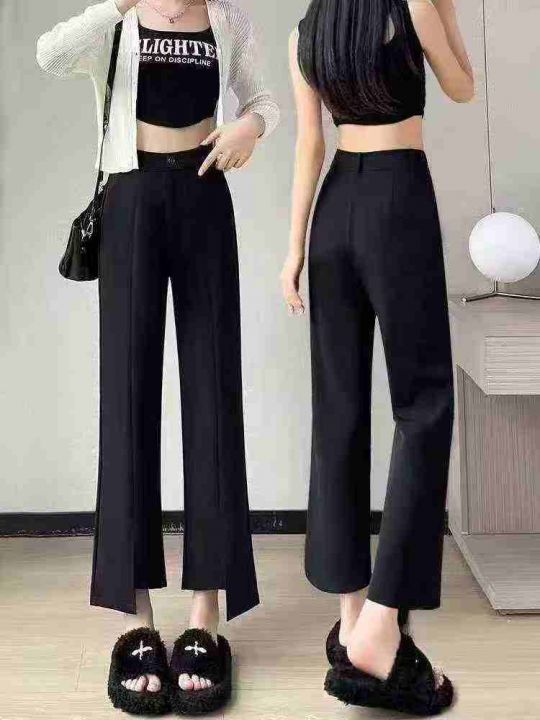 ☕️货号2312# 数量260条全清11.8元,码数S到XXL,独立包装,内里都有包边,单款黑色开叉西装裤女春秋季小个子垂感显瘦不规则九分阔腿裤