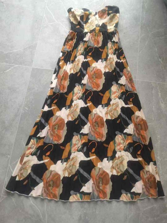 欧美外贸印花压褶无袖抹胸长款甜妹节日连衣裙,独立包装,S -3 xl码,40件左右,全清7.8