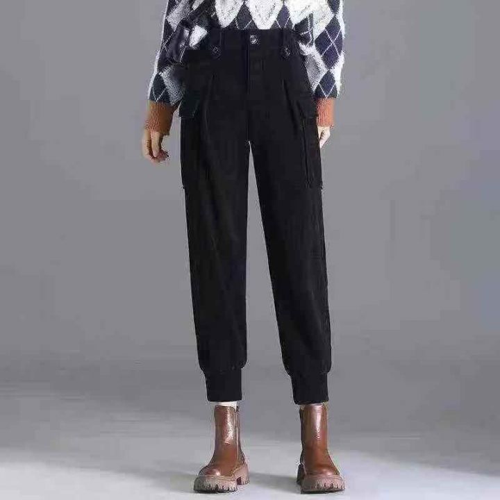 杂款杂码加绒加厚灯芯绒裤子,小整松紧腰灯芯绒裤子韩版宽松高腰阔腿裤加绒...
