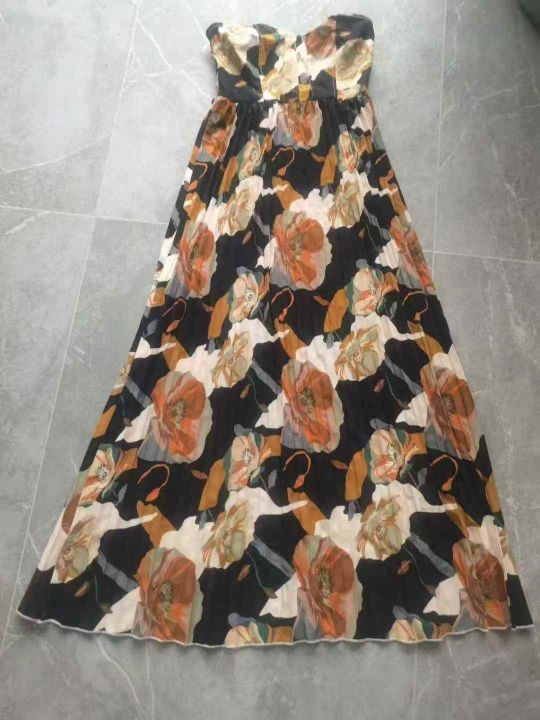 欧美外贸印花压褶无袖抹胸长款甜妹节日连衣裙,独立包装,S -3 xl码,40件左右,全清7.8