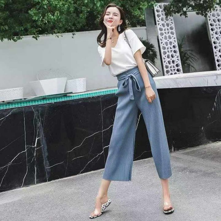 韩版夏季新款高腰百褶雪纺阔休闲裤,独立包装,码数S-...