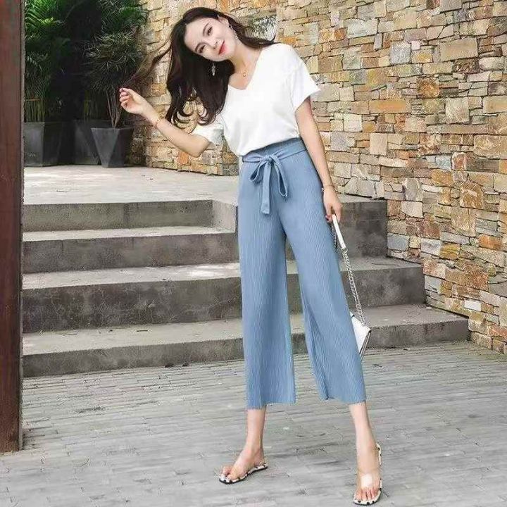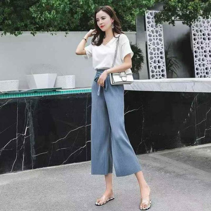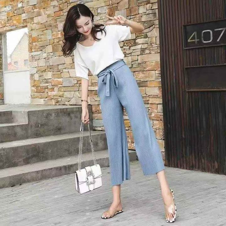 韩版夏季新款高腰百褶雪纺阔休闲裤,独立包装,码数S-...