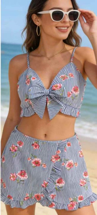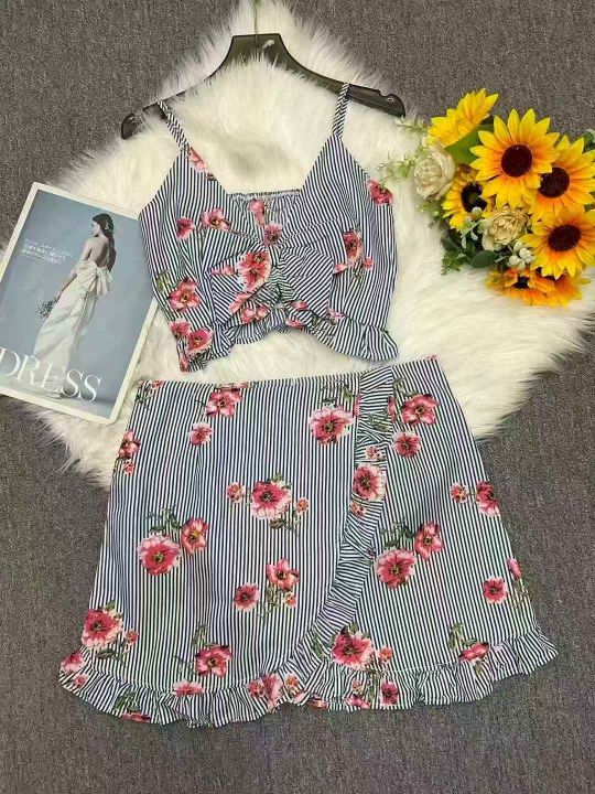 品牌外贸原单辣妹性感女装吊带背心+休闲短裤2件套,独...