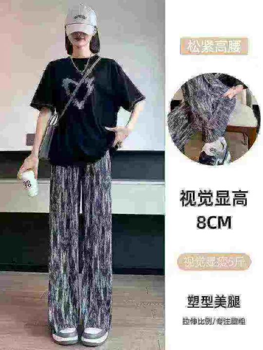 冰凉感直筒冰丝阔腿裤女夏季薄款休闲防蚊显瘦垂感扎染裤子,独立包装,码数M-2XL(2-5)数量496条,3码裤长100厘米,货号0915#54