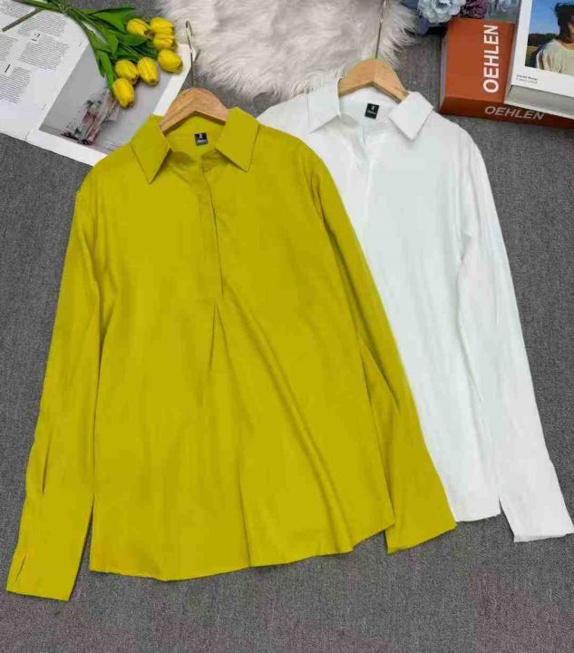 全清价6.8雪纺时髦翻领长袖宽松显白高级感简约风衬衣...