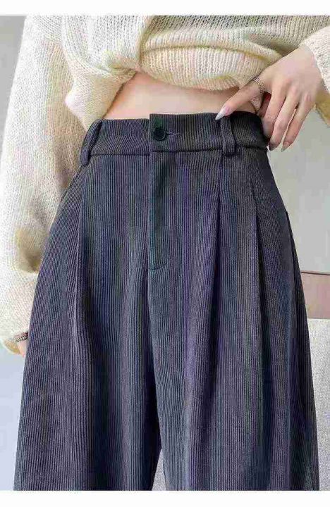 ☆801款,女装灯芯绒高腰宽松直筒松紧腰女西装裤,661件,S-4XL,货品新净...