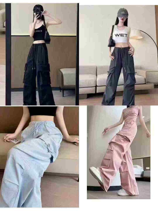 复古高腰独特设计多口袋工装长裤,[爱心]100件左右,款号#043#25005,绑带款为主,,码数S-XL,穿70-130斤,万佳档口货,原包装️无瑕疵,[666]实体店品质