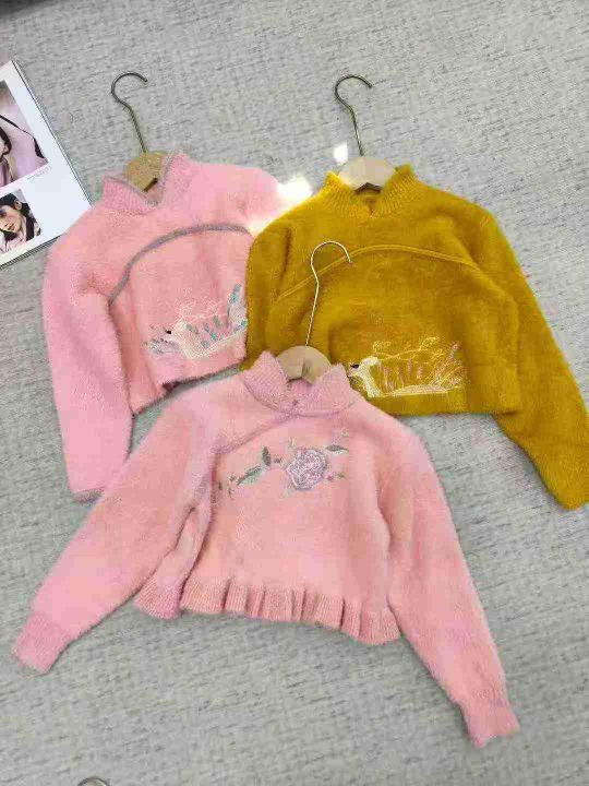 4.8清340件左右童装水貂绒刺绣短裤毛衣,码数110-140...