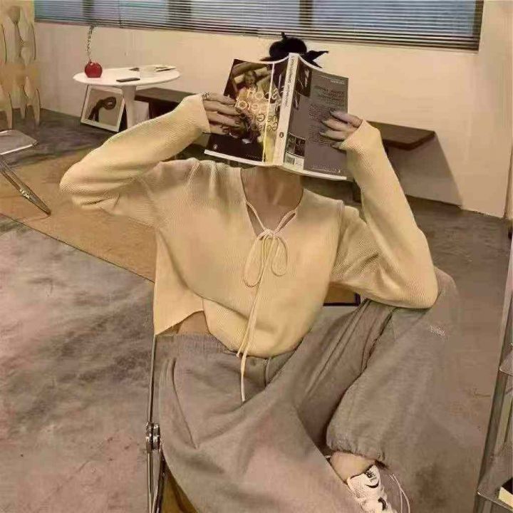 秋季新款韩版宽松设计感小众绑带长袖针织套头毛衣,独立包装,均码面料柔软舒适,100件左右,全清6.9元超低价秒杀!。 货号:24862