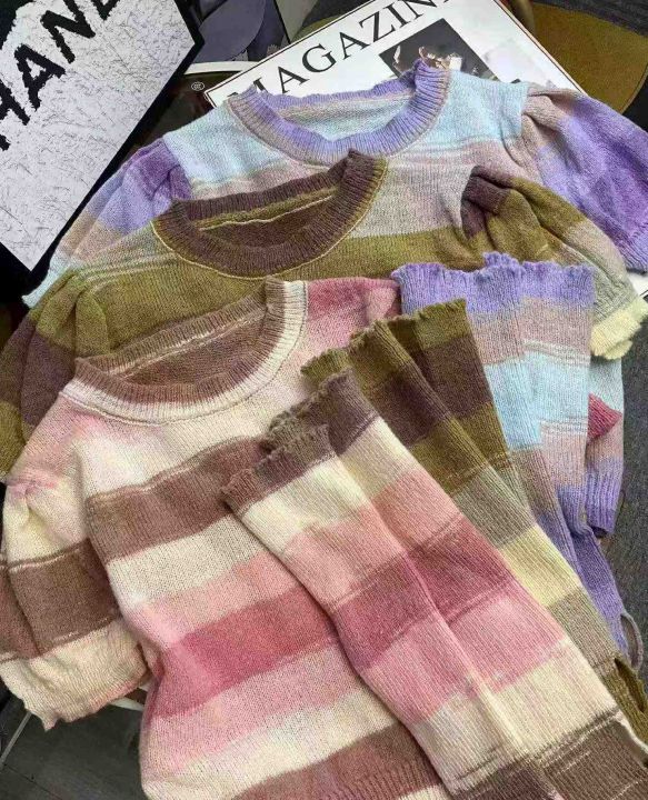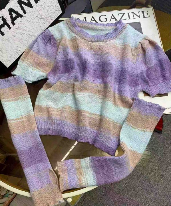 春秋新款网红复古撞色彩虹条纹氛围感穿搭可拆卸长袖短款针织套头毛衣,独立包装,均码面料软糯舒适,605套,全清6.9元超低价秒杀!分货加一!。 货号:24862