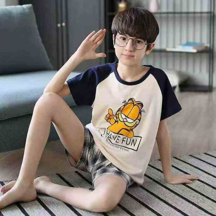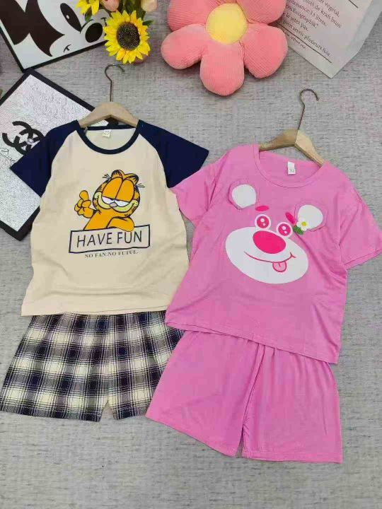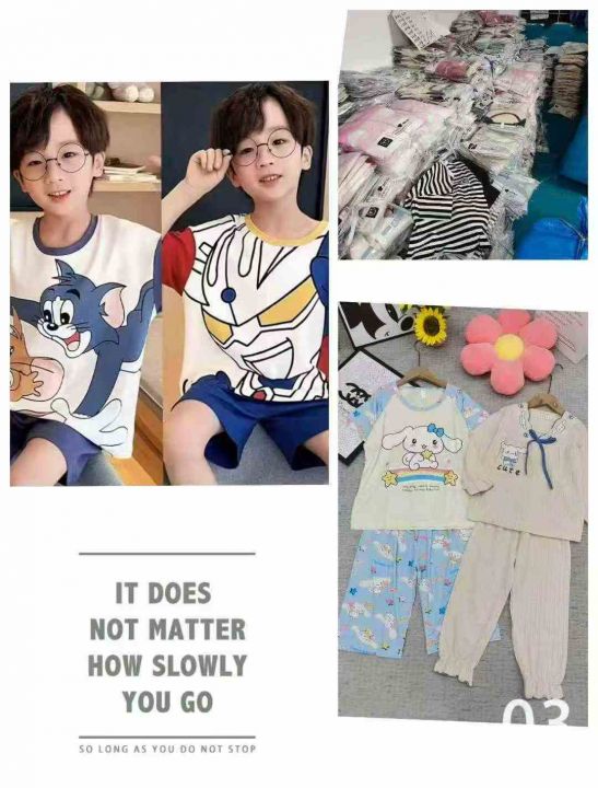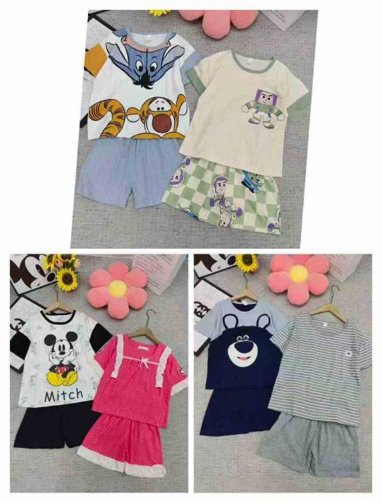 有些裤子七分裤 有些裤子是短裤 上衣都是短袖,长袖长裤的极少 男女童都有