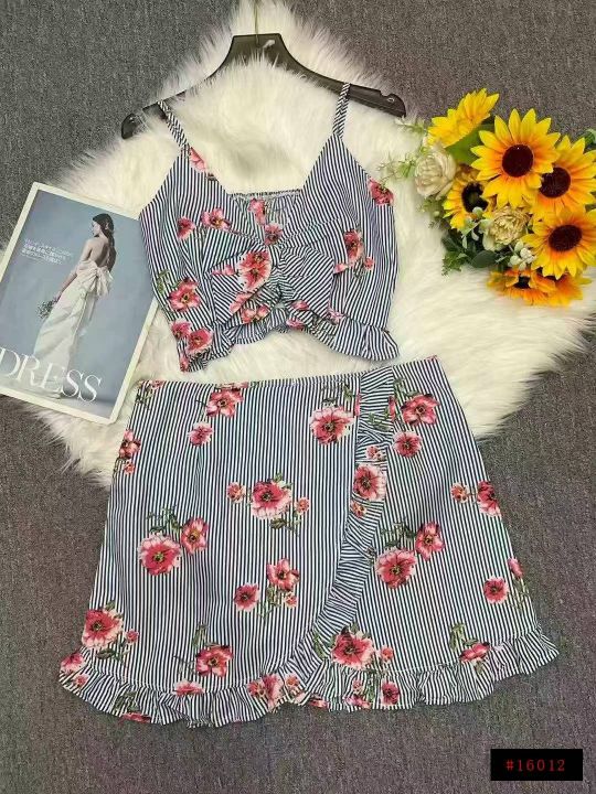 品牌外贸原单辣妹性感女装吊带背心+休闲短裤2件套,独...