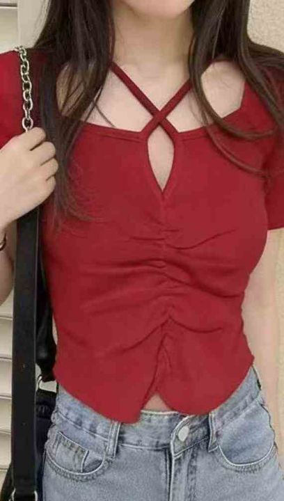 夏季新款纯欲风辣妹性感御姐V领弹力修身显瘦针织衫,独立包装,均码面料柔...