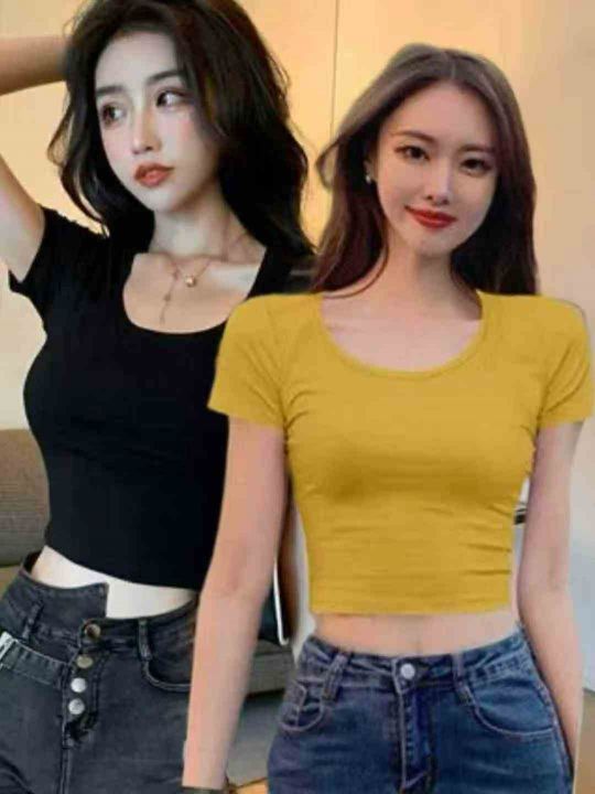 露脐辣妹短袖t恤女糖果色修身显瘦短款上衣ins潮,独立包装,码数s-2XL,数量1191件,分货加1,货号111#7。 货号:24862