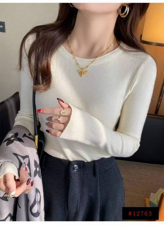 秋冬新款净版简约弹力修身显瘦圆领包芯纱套头毛衣,独...