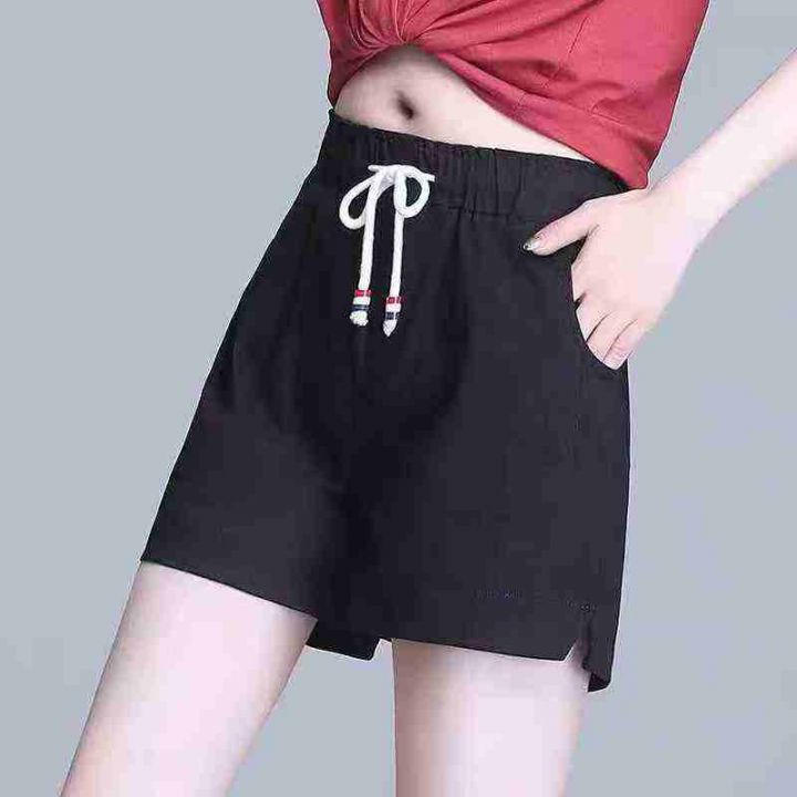 纯棉休闲短裤女夏2025新款韩版显瘦松紧腰运动宽松阔腿...